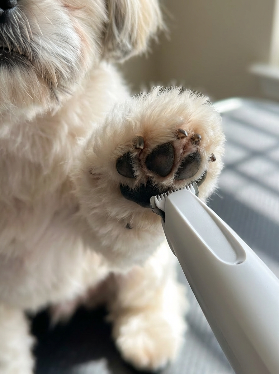 I was always nervous about trimming between his pads, but this feels controlled and safe. It’s precise without being harsh.